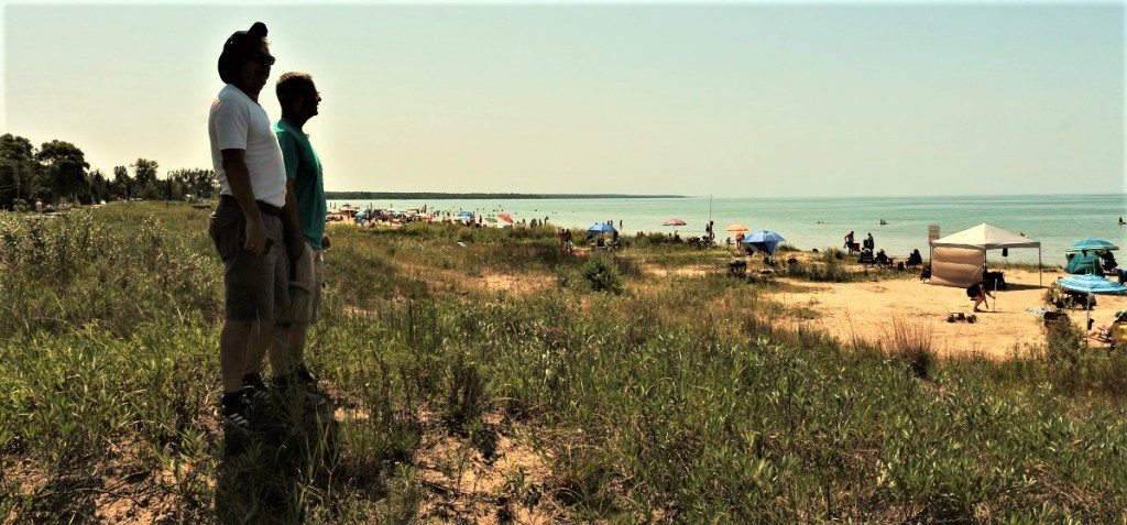 Unos 50 kms antes de llegar a la Península nos desviamos hacia el lago Huron donde hay unas playas muy populares en un lugar que se llama Souble Beach, estaban llenas de gente tomando el sol, el agua estaba fria y uno podía meterse al lago unos 20 mts sin que el agua llegara a las rodillas.