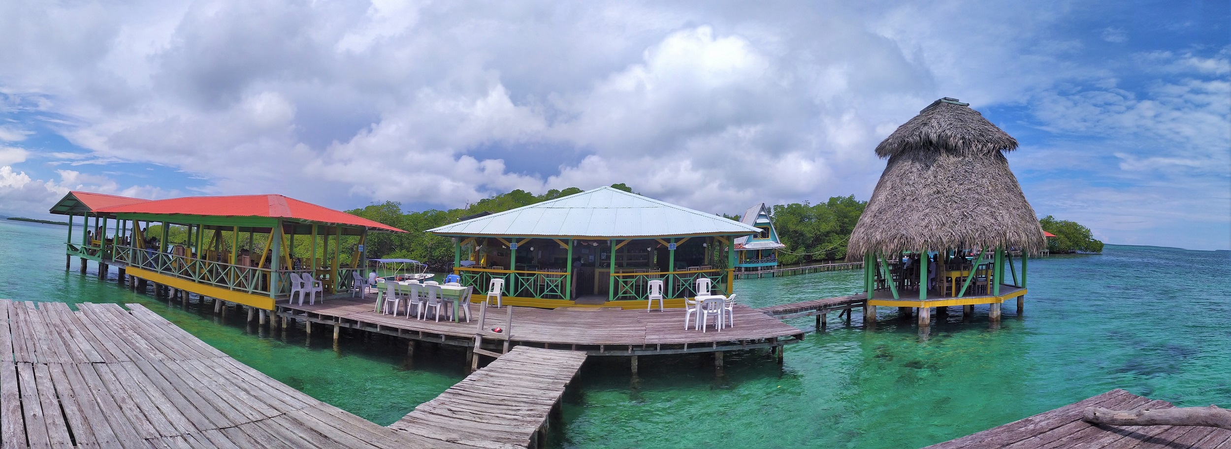 En Bocas del Toro, nos alojamos específicamente en Isla Colón en un pequeño hostal de un canadiense que se llama BarrBra BnB, solo para 16 huéspedes, estaba full, nosotros 4 viejitos latinos y los demás un grupo de mochileros jóvenes europeos.