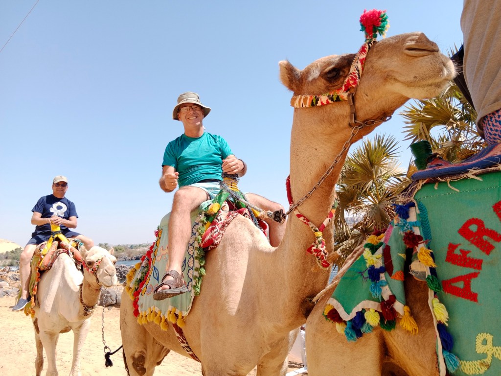 Otro paseo super chevere fue en una pequeña embarcación cruzando el Rio Nilo por las islas y terminar en el Pueblo Nubio a donde llegamos en camello. Pueblo Nubio es un viaje al pasado y al modo de vida tradicional de una cultura milenaria que se desarrolló entre el sur de Egipto y el norte de Sudán. Actualmente existen varios pueblos nubios, del que Gharb Soheil es la localidad más importante, pero el resto se extiende a lo largo del valle del Nilo y todos mantienen una fisionomía que los hace diferentes al resto de habitantes en Egipto y en Sudán: una bella piel oscura y de rasgos muy marcados con ojos muy claros, incluso azules en muchos casos.