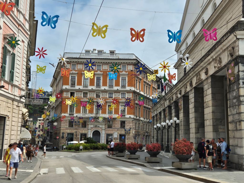 La ciudad tiene más de 1.4 millones de habitantes, es una ciudad portuaria muy importante desde hace muchos siglos y es la capital de la región de Liguria, en el noroeste de Italia. En la ciudad antigua, se encuentra la catedral de San Lorenzo muy bonita, uno camina por callejones angostos de casas antiguas y pequeños negocios y al parecer todos llegan a la monumental Piazza De Ferrari, donde hay una icónica fuente de bronce y se encuentra la sala de ópera Teatro Carlo Felice.