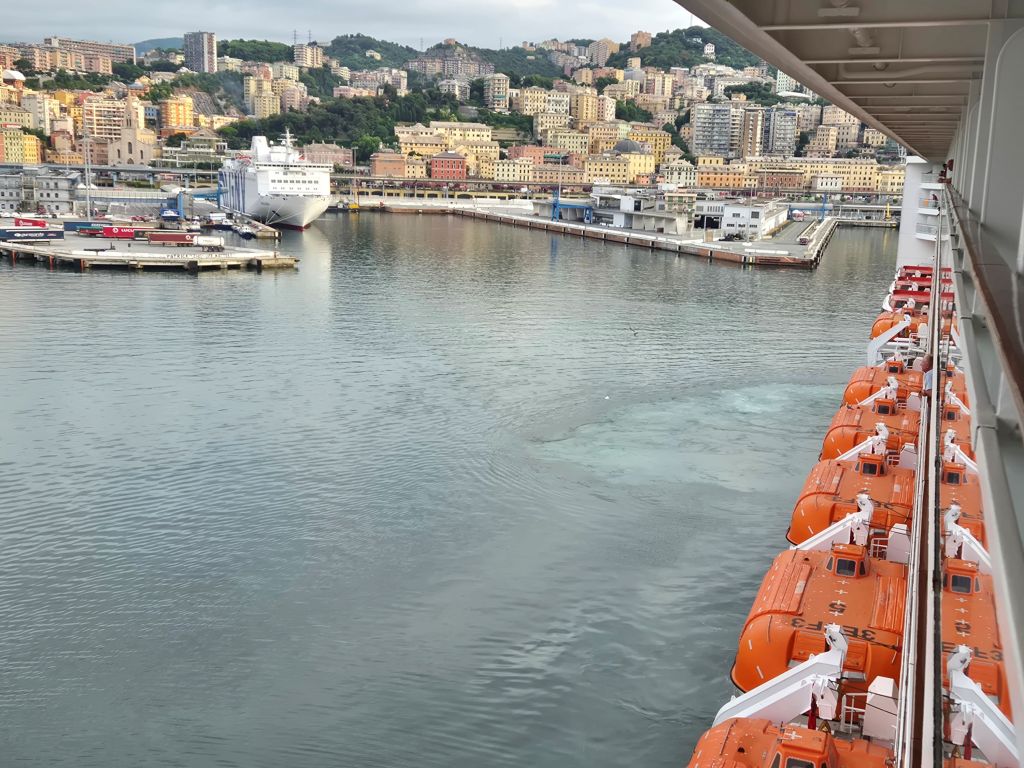 Desembarcamos en el famoso y gigantesco puerto de Génova en Italia después de navegar toda la noche por el Mar Mediterráneo partiendo desde la pequeña ciudad de Civitavecchia cerca de Roma durante nuestro paseo familiar de 8 días en el Crucero MSC.